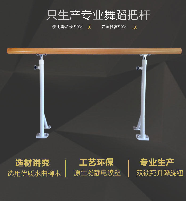 舞蹈把杆在专业的舞蹈教室里面,或者是说跳舞的地方,不仅需要一个良好的地面材料,舞蹈把杆也是必不可少的。